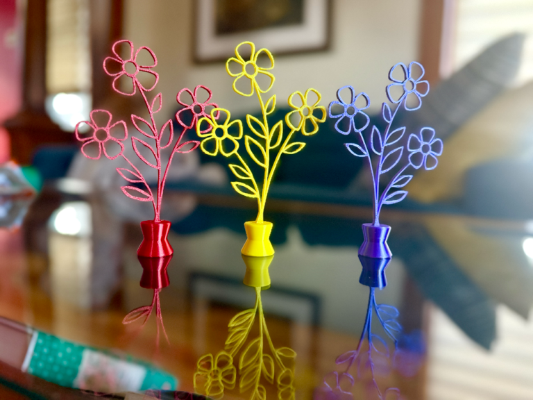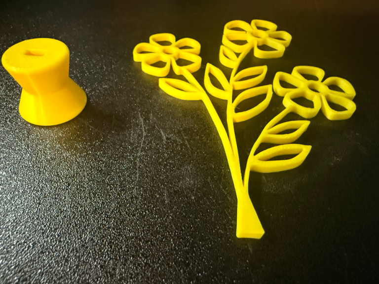 Počinjemo kratkim probnim primerom da biste odmah videli kako izgleda ceo proces od ideje do štampe. Zatim svako dizajnira sopstveni cvetni žeton — oblik, detalji i personalizacija su na vama. Vaš žeton nije samo vežba: postaje funkcionalni deo prolećne vaze koju ćete sklopiti na drugoj radionici!